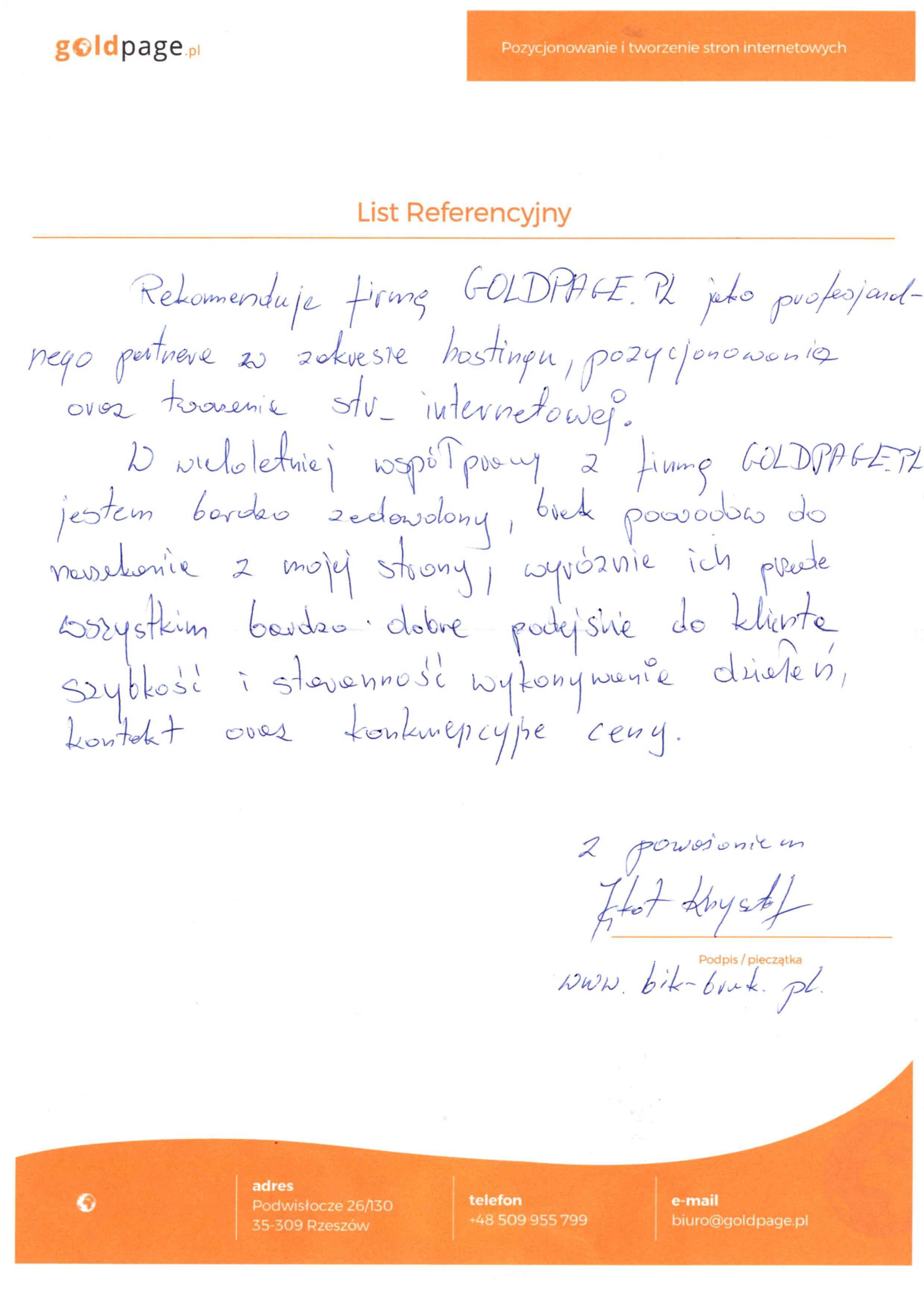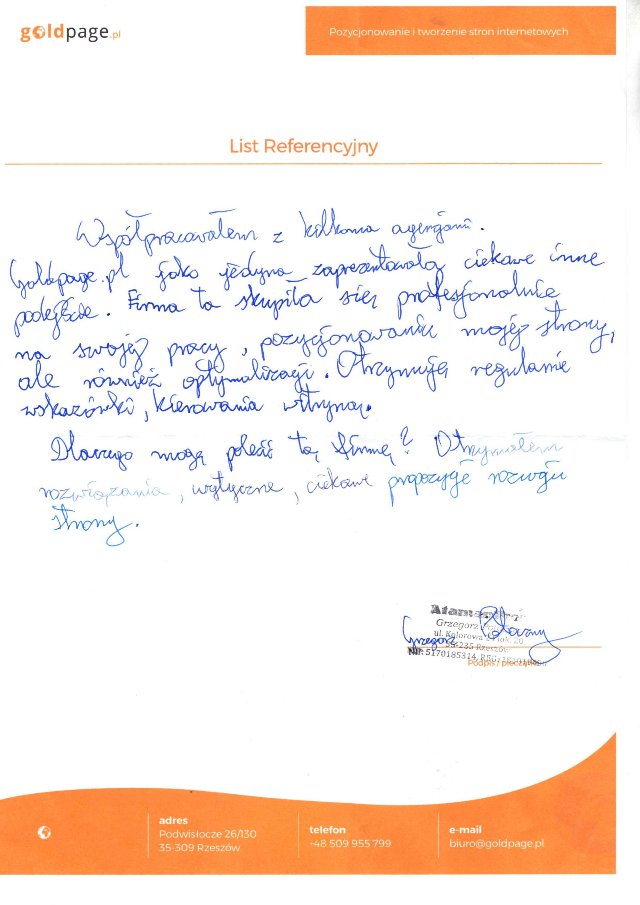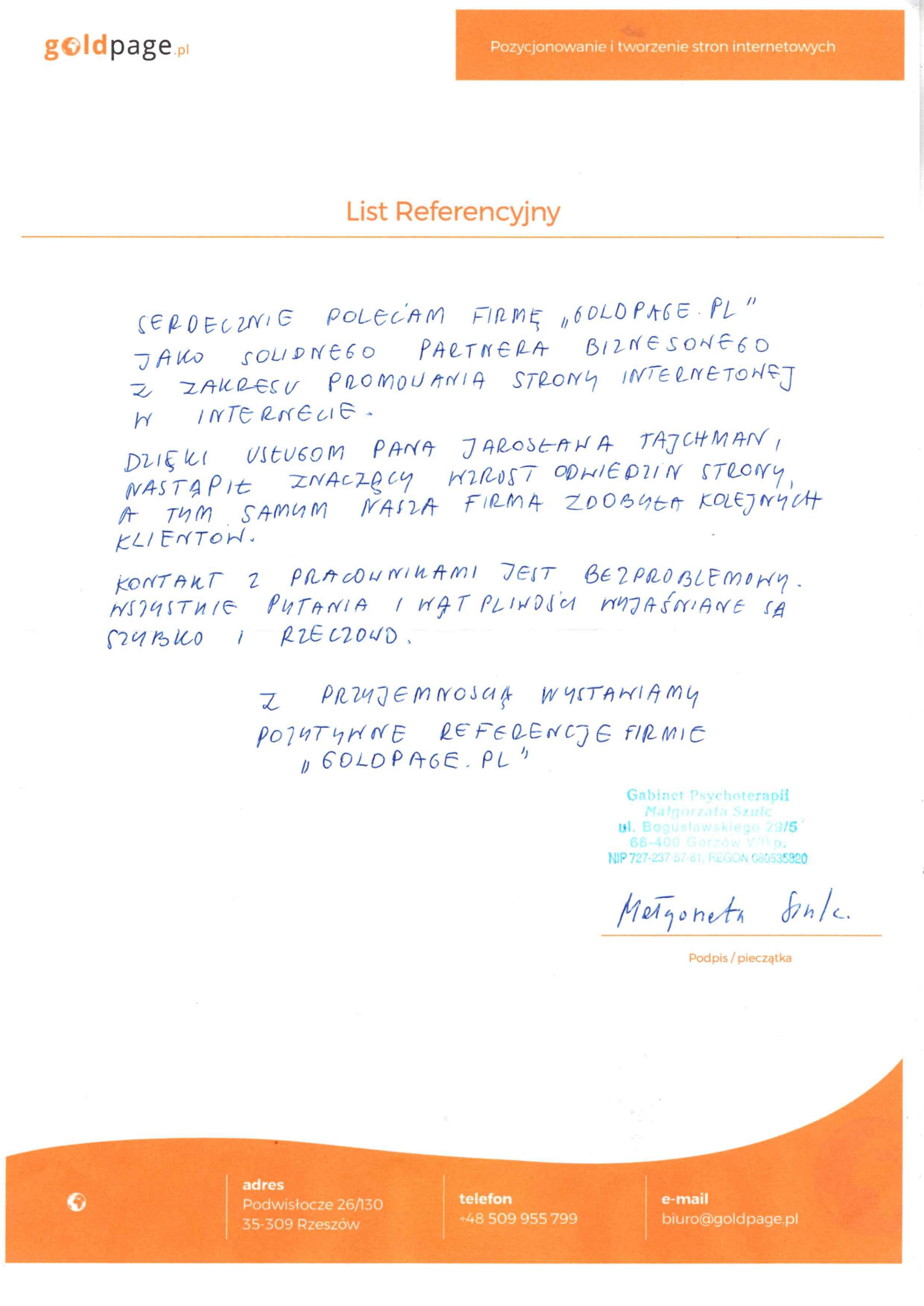 Firma Goldpage.pl powstała w 2009 roku i mimo upływającego czasu i licznych zmian w algorytmie Google, ciągle z sukcesem pozycjonujemy wiele stron klientów, którzy są w pełni zadowoleni z naszej współpracy o czym można przeczytać w referencjach firmy. Największy wpływ na owocne funkcjonowanie Goldpage.pl mają nie tylko nasze umiejętności w pozycjonowaniu stron internetowych ale również przejrzysta i jasna umowa dostosowana do oczekiwań klienta, bezproblemowy i szybki kontakt, atrakcyjne ceny oraz to co najważniejsze czyli profesjonalizm podczas każdego etapu trwania umowy. Posiadamy spore doświadczenie jednak szybkość zmian w kryteriach wyszukiwania sprawia, iż musimy na bieżąco aktualizować swoją wiedzę uczestnicząc na szkoleniach czy konferencjach, ale mimo wszystko najbardziej wartościową wiedzę dostarczają nam nasze własne badania i testy, które wskazują nam jaka droga w pozycjonowaniu stron klientów jest najbardziej bezpieczna i skuteczna.